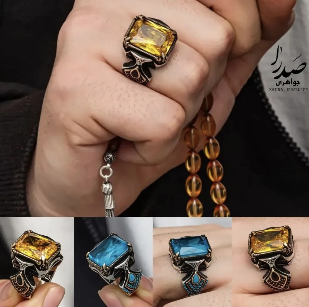 انگشتر مردانه رکاب نقره 925 نگین دار