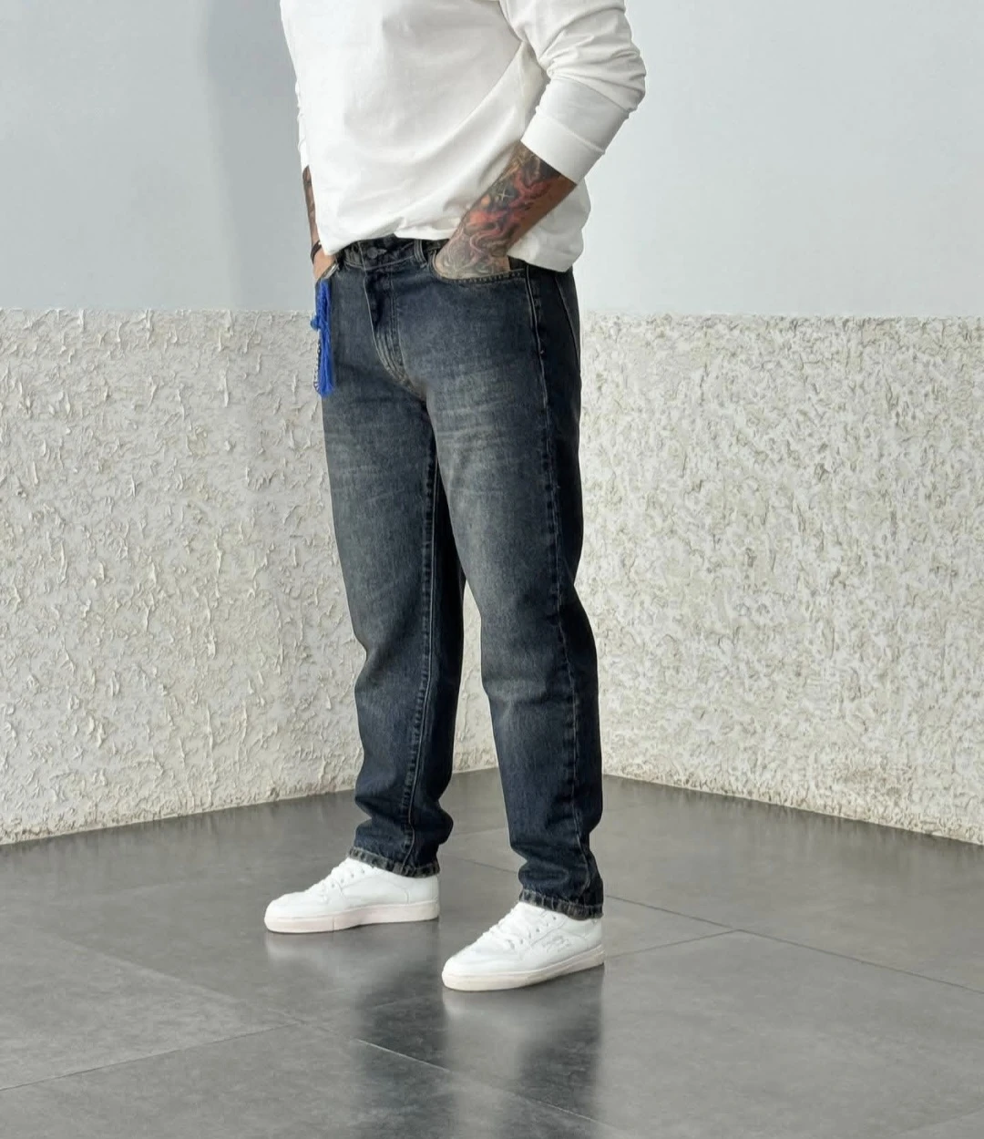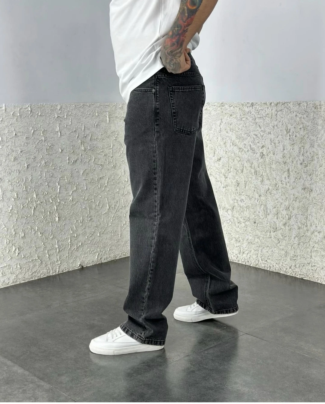 شلوار جین مردانه بگ استایل پارچه کجراه گرم بالا