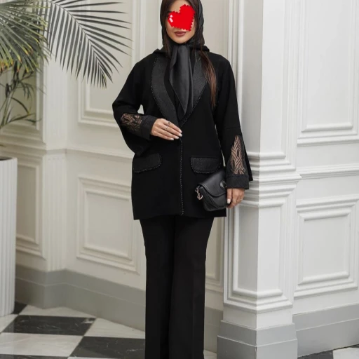 کت مجلسی زنانه لبه یقه مهره دوزی جنس کرپ مازراتی