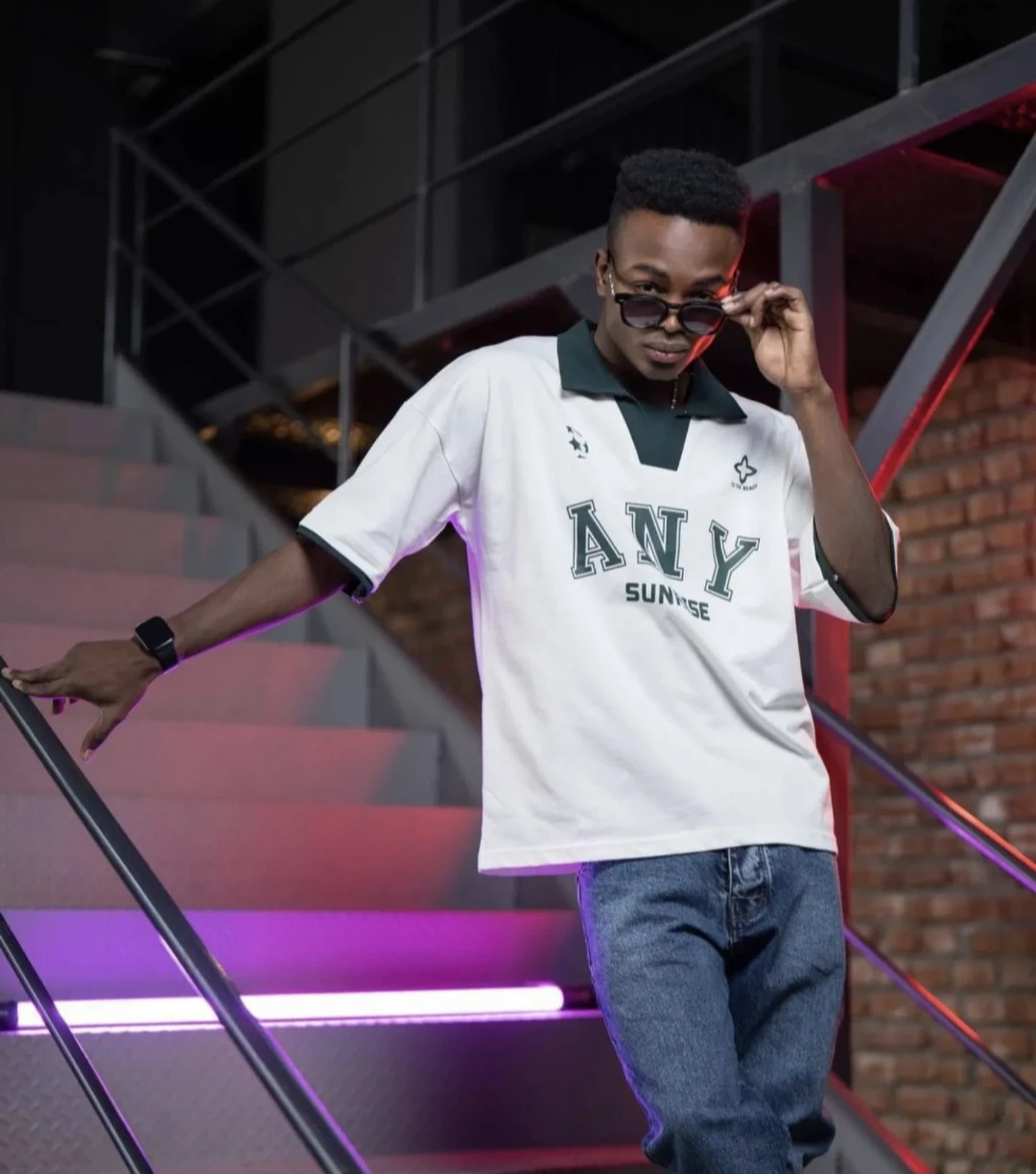 تیشرت مردانه یقه دار باکسی پارچه ماکان نفیس